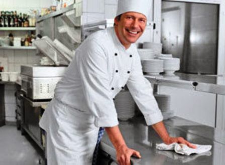 Для качественной работы предприятий общепита дезинфекция помещений с помощью химических веществ должна проводиться не менее 1 раза в месяц. Работники предприятий общепита должны проходить медицинский осмотр до приема на работу и ежегодно в процессе работы. Сотрудники проходят гигиеническую подготовку по дезинфекции.